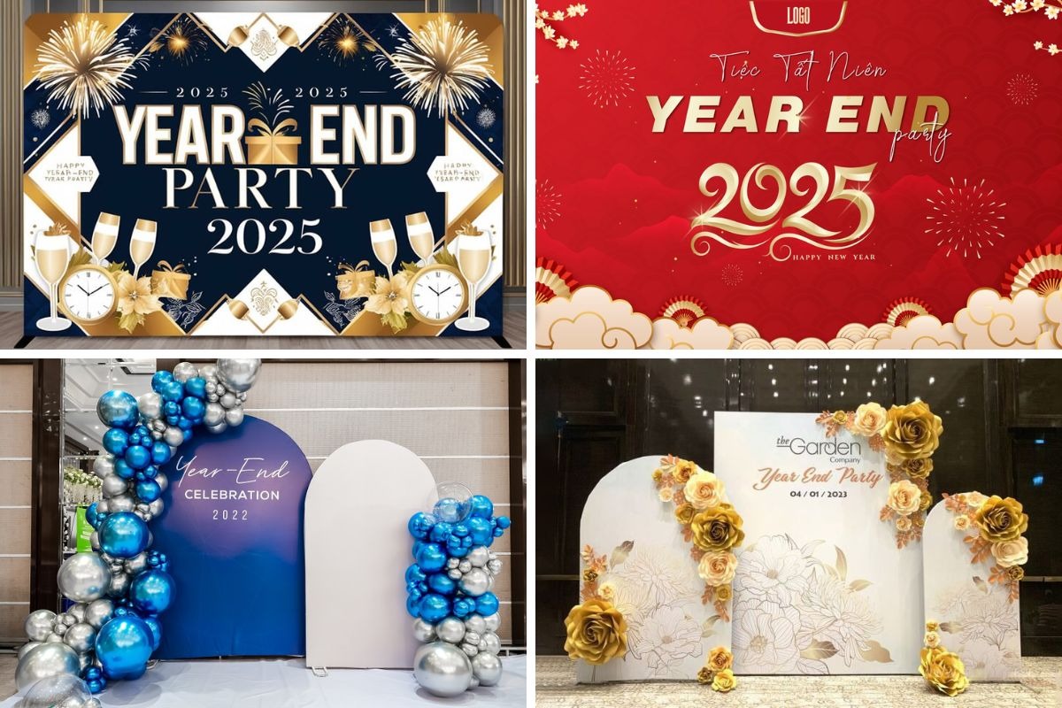 Dưới đây là một số mẫu backdrop Year End Party ấn tượng mà doanh nghiệp nên tham khảo để trang trí trong buổi tiệc tất niên năm 2025.
