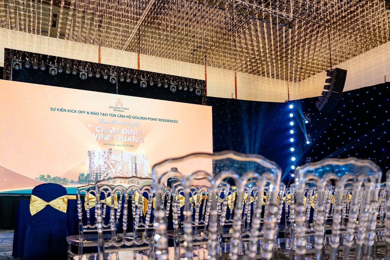 Setup sân khấu, âm thanh, ánh sáng xuyên suốt buổi tiệc