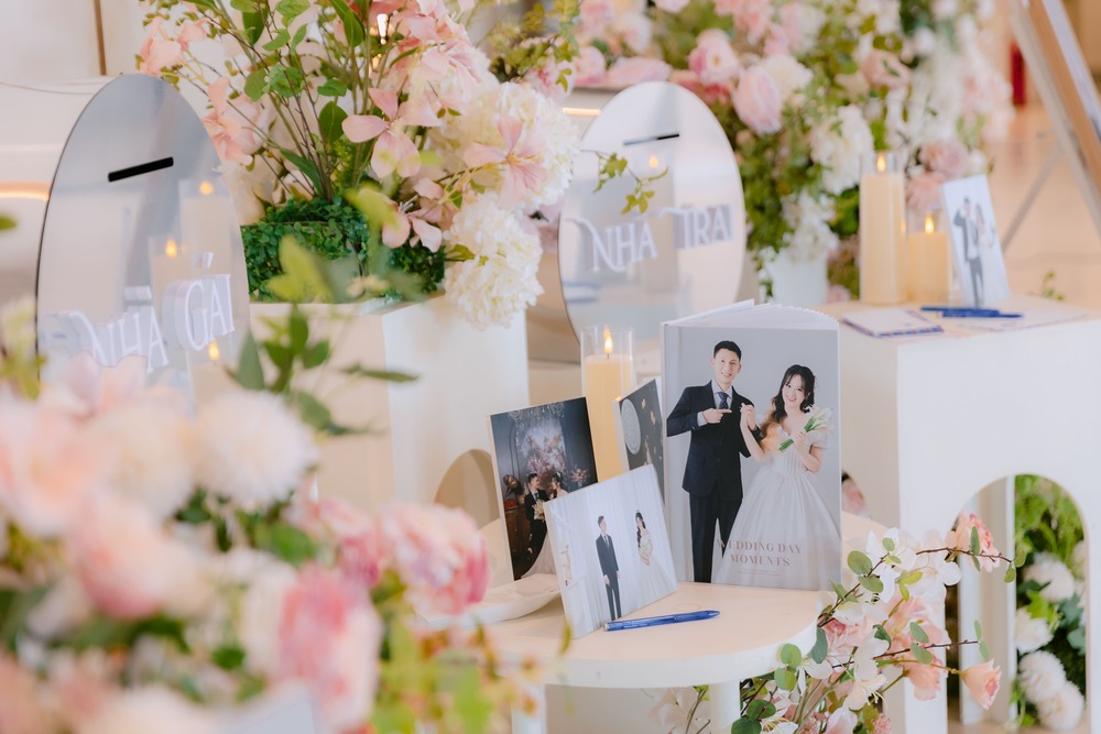 Khu vực đón khách (Welcome Zone) năm 2026 được nâng cấp thành một trải nghiệm đa giác quan. Thay vì những bàn ký tên đơn điệu, các cặp đôi sử dụng các quầy đồ uống tương tác, nơi khách mời có thể tự pha chế một ly cocktail theo công thức yêu thích của cô dâu hoặc chú rể. Những bức tường trưng bày ảnh không chỉ là ảnh cưới mà còn là những thước phim candid capturing những khoảnh khắc đời thường, được trình chiếu qua hệ thống màn hình LED.